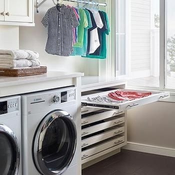 Simple and cozy laundry room. This laundry room looks pretty busy yet organized simultaneously. Classic interior design drawing room. Living in a place with long cold wet winters our most successful drying room was a combined laundry mud room with heated concrete floor and cross ventilation from doors and windows clothes were hung on coat hangers suspended from wall to wall steel rails kept separated for air circulation a 2 5m single rail holds about 20 separate items a simple clothes rack suspended overhead was used.